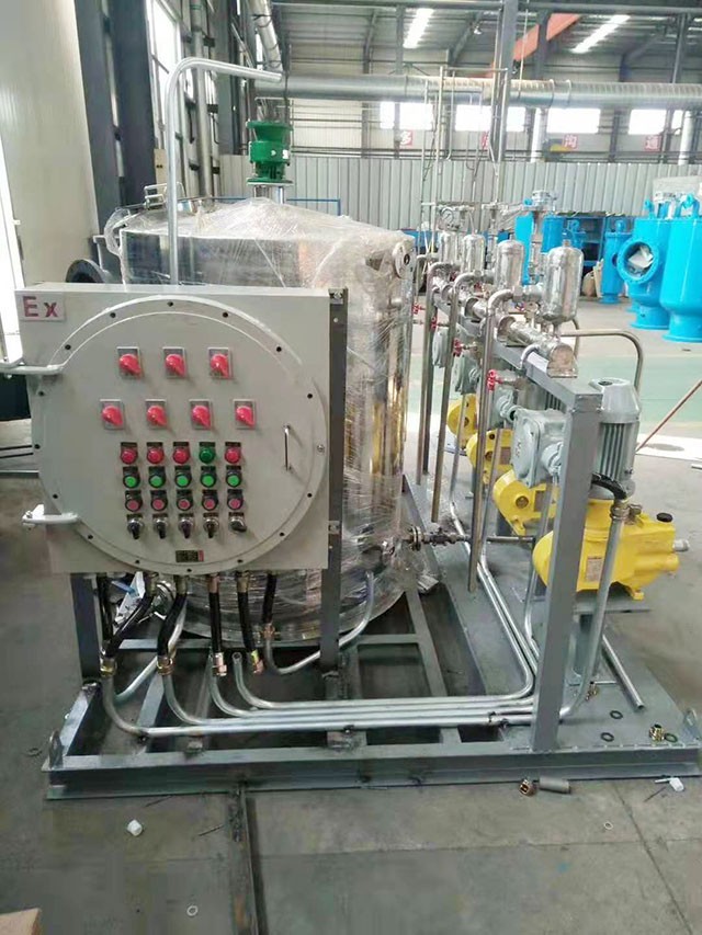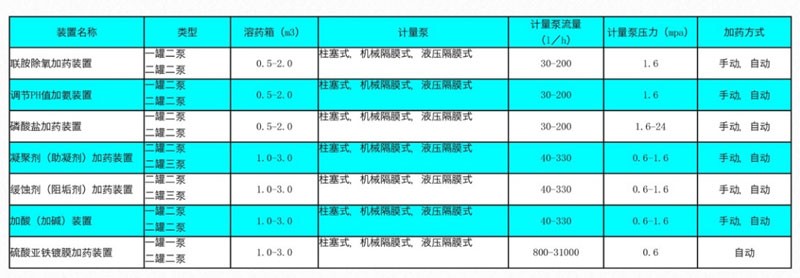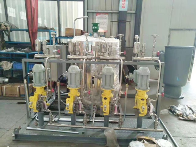 加藥系統(tǒng)是一套完整的設(shè)備,配料,混合,液體的輸送,在一個(gè)自動(dòng)控制,原水,水,油田鍋爐,廣泛應(yīng)用于發(fā)電廠集輸脫水處理系統(tǒng),石油化工各種加藥系統(tǒng)和廢水處理系統(tǒng)。作為混凝劑,磷酸鹽,氨,石灰水,緩蝕劑,阻垢劑,劑等。加藥裝置主要由攪拌罐,溶液箱,計(jì)量泵,管道閥門,在機(jī)電一體化設(shè)備電氣控制柜組合平臺(tái)。